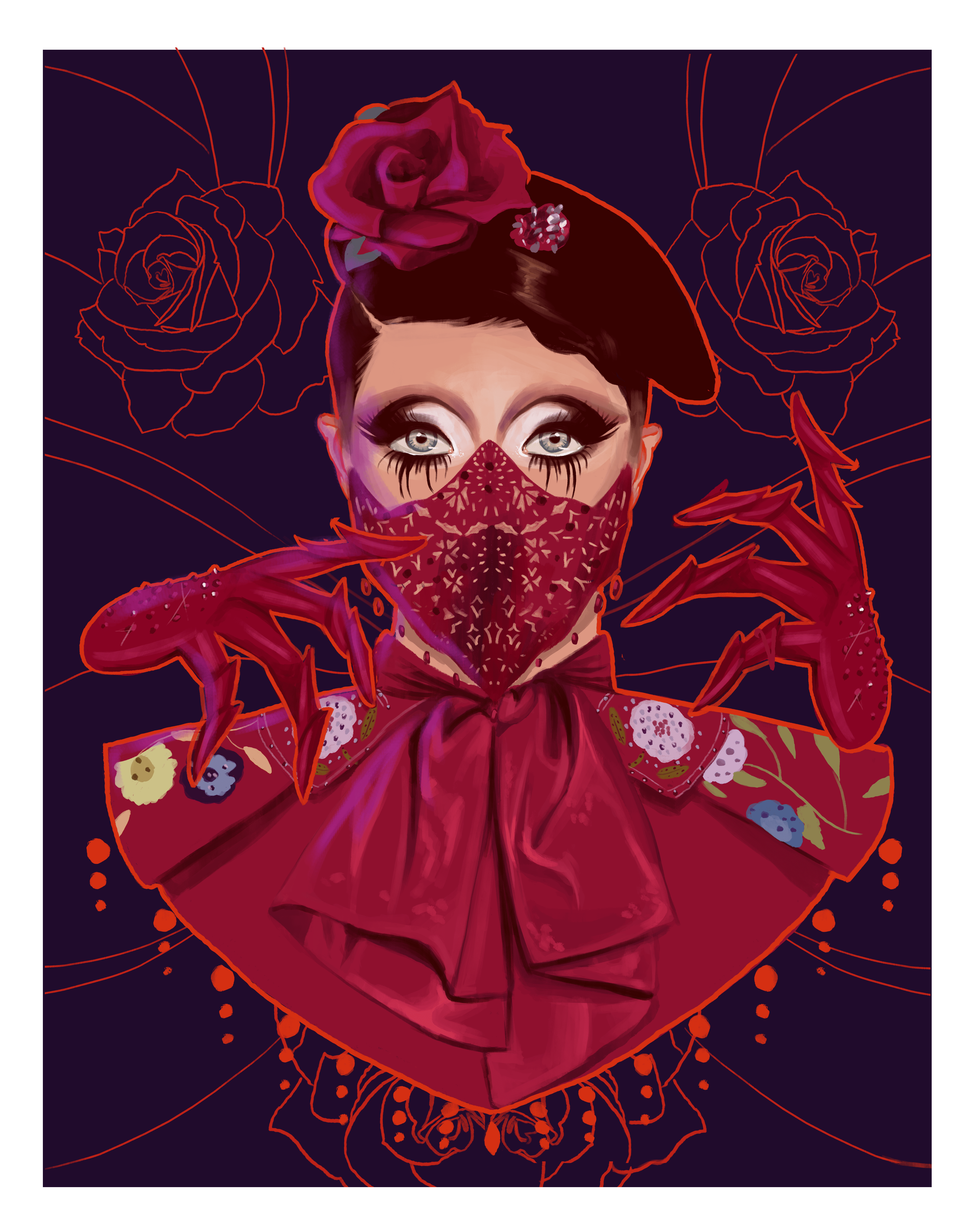 This illustration was commissioned by JUTE Magazine for their back cover feature. Blending high fashion and fantasy, the artwork presents an ethereal, couture-clad figure surrounded by flamingos, evoking themes of femininity, elegance, and surreal beauty. The piece complements the editorial tone of the magazine while adding a dreamlike visual twist to its closing page.